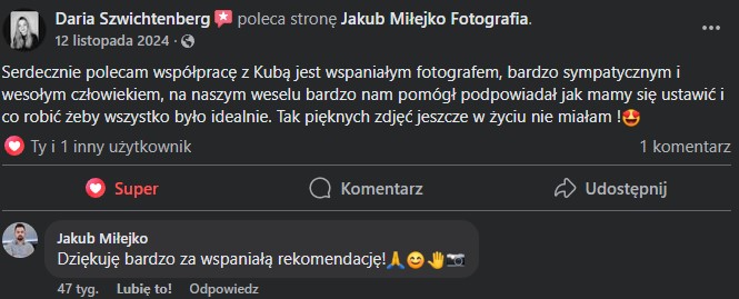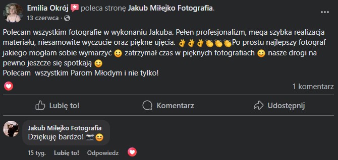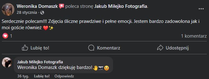 Napisz wiadomość na Facebooku lub Instagramie abyśmy mogli porozmawiać o szczegółach Waszego ślubu / Twoich 18-stych urodzin lub imprezy 🙂